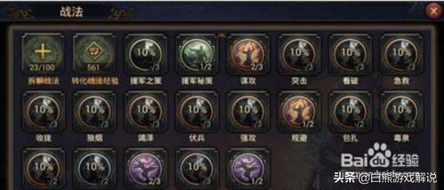 首先战法就是武将的技能了,一个回合会释放一次的技能,如果没带就吃亏了,武将本身就有一个技能,哪个叫基础战法,好用的武将就是基础战法厉害,一开始我们可以带一个基础战法和普通战法,到了后面武将觉醒可以再带一个战法,所以一个武将可以带两个战法。 2 三星的武将战法有的都是四星的缩小版,我们可以多抽3星武将,还有其他的卡包,来获得更多的3星武将。 3 必拆的战法有几个,规避、连战、铁壁、援军秘策、火缁、毒泉,这些都是不错的战法,属于必拆的战法,可以用到中期,因为前期也可以拆掉,好获得,好培养。 4 可以选择拆的战法,铁壁、陷阱、攻其要害、夹攻、溃堤、绝道、落石、齐射、连战、顽抗、反计、云梯,这些战法都不错,可以看自己喜欢那些战法然后决定这边的再拆几个,这样就有好几个三星战法了,三星战法前期好培养,只要十张三星武将就可以升级了,所以推荐拆的就这些战法了 5 最后推荐大家拆三星战法有的该拆的就拆掉,前期就是一些战法伤害比较高的,还有迷你的大火和毒泉,这几个技能都拆掉,可以用到中期,后期我们在拆4星的战法来过渡一下。