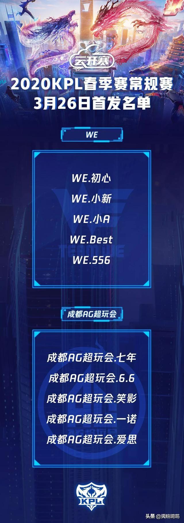 3月26日将迎来KPL春季赛第二周第二个比赛日的比赛,今天有两场比赛,分别是EDG.M对阵DYG,成都AG超玩会对阵WE,其中EDG.M方面上到了浪浪,不过打的位置是辅助位,其他位置保持不变。而成都AG超玩会方面上到了爱思+七年这对组合,其他位置保持不变。有意思的是,KPL联赛官方海报提出了这么一句标语“一超之势”,来形容成都AG超玩会对阵WE!