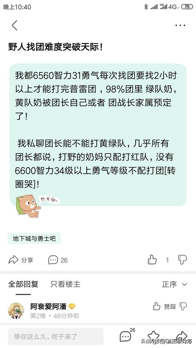 DNF我6500智31J勇气奶妈打普雷要找两小时团,黄绿队奶妈几乎都是团长家属,如何评价?