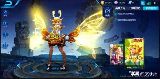 孙膑精灵王皮肤是一款精灵皮肤,金色的翅膀,特效也是金色的。