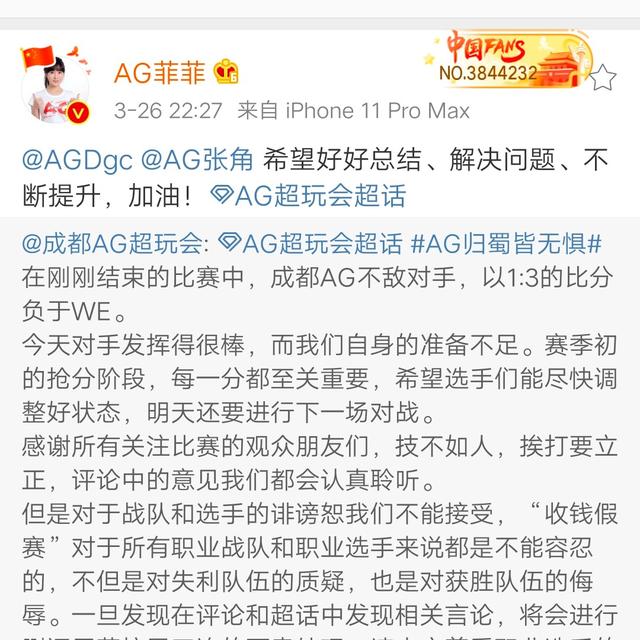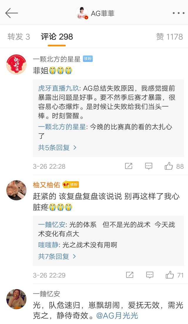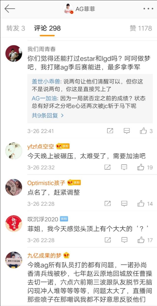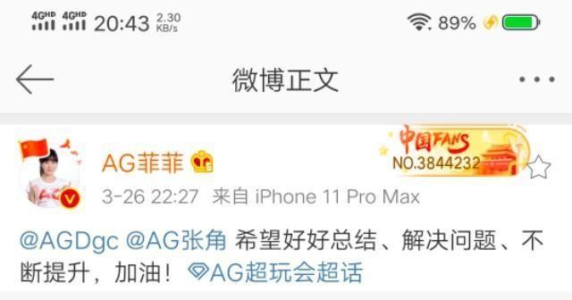 AG菲菲官博遭粉丝“围堵”,纷纷呼吁将麟羽和月光抬上来,AG输了,该七年和Dgc背锅吗?