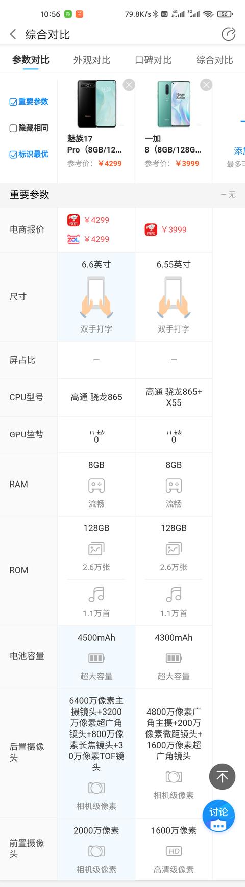 在外观上,两款手机都是挖孔屏,价格上,魅族17PRO稍微贵一些,毕竟魅族17系列顶配,参数方面差距也不是挺大,最后还是要看你个人的喜好了