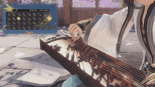 演出内容并不难,只要奏响界面中的古筝琴弦即可。不用懂什么宫商角徵羽,各位只要按下界面中的按钮,即可发出对应的琴音,还可自由选择升调、降调等操作。熟悉了之后,大家久能能流利地弹出《浣溪沙》《雨霖铃》等经典曲目了。