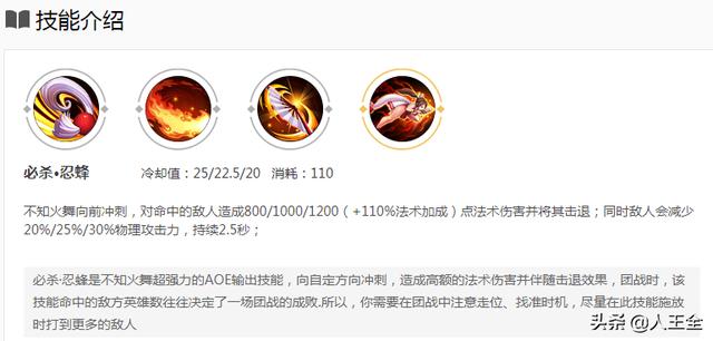 玩火舞的精髓是扇子丢的准,最最最需要注意的是控制能量条,别一个一技能进场了,发现没能量放大了,那妥妥的死人堆里。这个圈起来,重点,要考。还有,注意攒被动。脱战三秒一个。带斩杀或者闪现都可以。