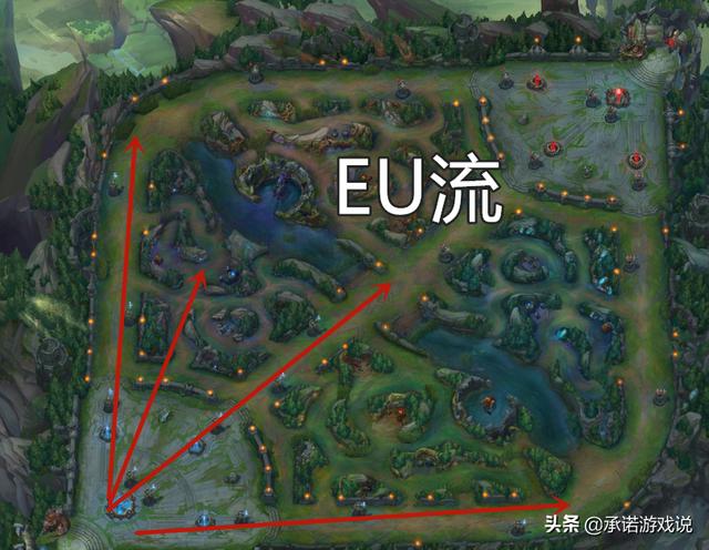 所谓的EU流打法,其实就是现在我们常用的一种打法。上单、打野、中单和下路双人组的分路方式。而打野就是这个打法的最核心位置。