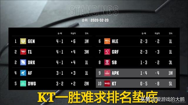 2月20日,此前四连败的KT遭遇同样四连败的APK,有玩家戏称天王山之脚战,因为两支队伍没有打比赛前排名倒数第一,倒数第二,这场比赛结果会直接分出倒数第一的归属,最终KT以0:2不敌对手APK进入联赛倒数第一,很多玩家不敢相信曾经可以和巅峰IG媲美的KT仅仅一年会落到这个下场。