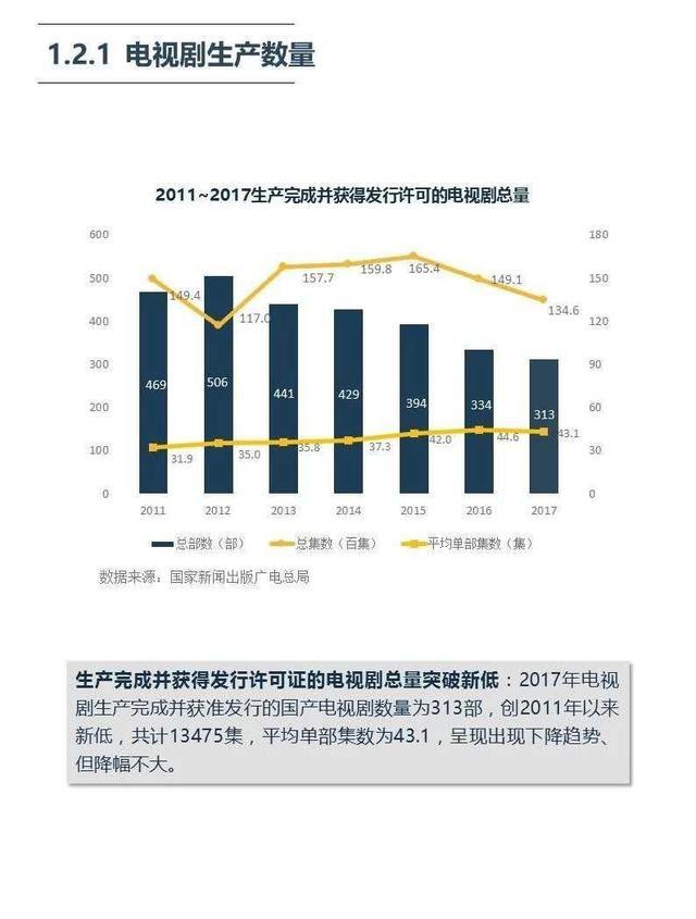 根据《2018中国电视剧产业发展报告》显示,这几年来,电视剧的平均单部集数从2011年、2012年的30-35集,发展至2013年已突破35集,到了2015年便已突破了40集。显然,电视剧集数一路高歌猛进,但电视剧的质量并未如同集数迅猛增长一样继续给观众带来惊喜和享受。