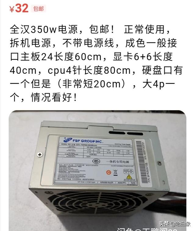 ✔电源选择一个350w电源足够,二手正品不是杂牌即可。价格35元。