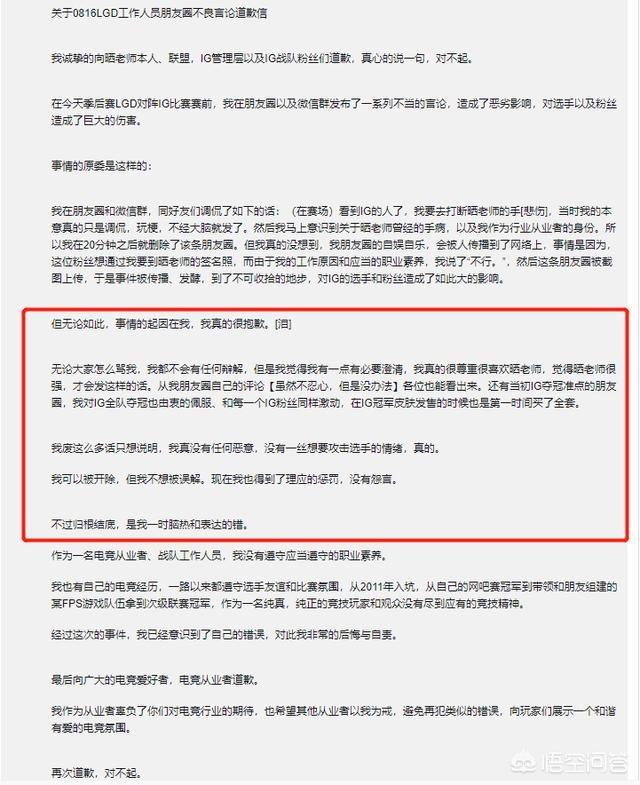 Theshy“断手事件”发酵,LGD火速回应,涉事员工发888字长文道歉,如何评价此事?