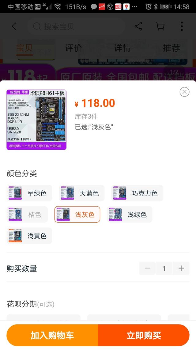 主板:H61,118元。注意要买支持22纳米的cpu,以后可以升级3代u,如:3470、e3之类的。最好是用b75,可以支持sata3,但是现在b75真贵,都快到200元了。