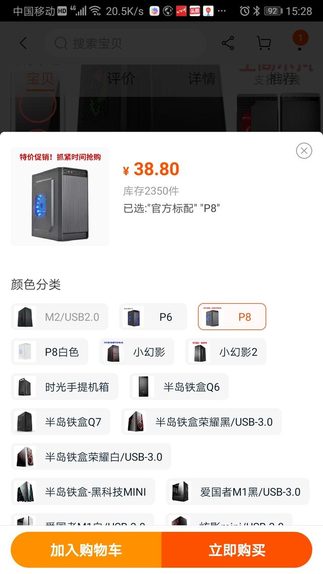 机箱:p8小机箱,39元。