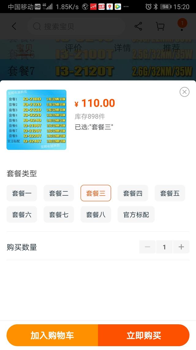 cpu:i3 2130,110元。主频3.4g,65w,双核王,鲁大师跑分3.5万,对付一般网游够用,吃鸡也能玩,帧数不高50帧左右,魔兽世界野外流畅、团本卡,毕竟魔兽世界是cpu游戏。