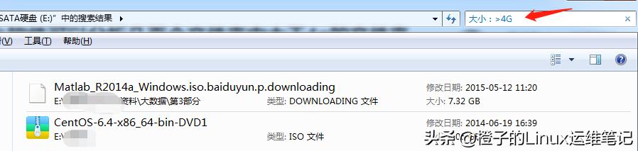 2、在搜索位置输入 大小:>4G