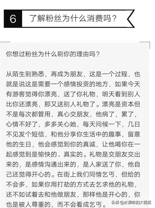 我是做直播的,如何提高自己的人气? spider 更新于 2023-07-25 05:35:25 全部 1026 我是做直播的,如何提高自己的人气? 回复 共2条回复 我来回复 水果味的大西瓜 这个人很懒,什么都没有留下~ 评论 这是曾经在之前的直播公司整理的直播经验,用图文的方式表达了出来,可以仔细看看 赞同 2019-10-09 13:04:19 0条评论 百工聚小百 这个人很懒,什么都没有留下~ 评论 我觉得,做直播提高自己人气的方法并不是花钱推广和水军刷礼。最主要的是记得:打铁还需自身硬!自己的技能提升了,内涵提高了,吸引的人自然就多起来。红不是一朝一夕的功夫,是需要刻苦磨练的。台上一分钟,台下十年功!加油吧,记得把您的直播好@我,我可以关注的。 赞同 2019-10-05 07:35:55 0条评论 请 登录 或者 注册 后回复。