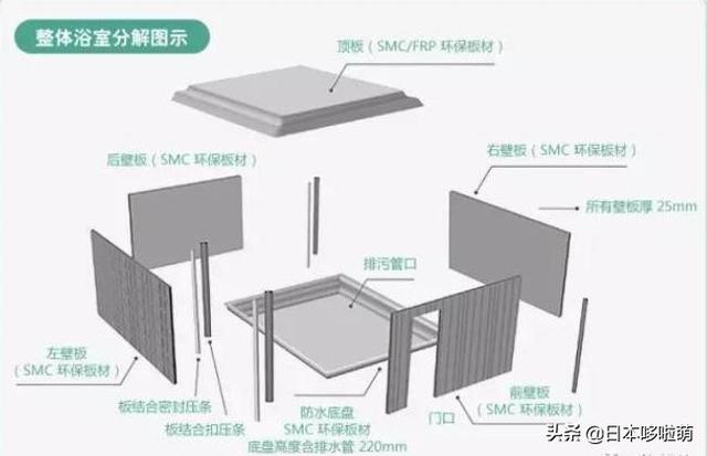 日本整体浴室,航空材料SMC,工业化生产,节能环保。不需要做防水和不需要贴瓷砖