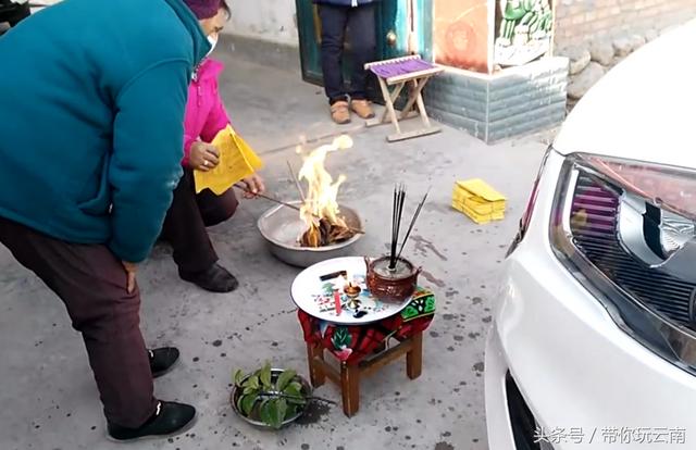 家里的老人就活份进来了,对着新车又上香,又烧纸钱、还放鞭炮、最后还要撒一圈的青稞酒。