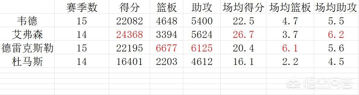 所以比较数据的话,艾弗森>德雷克斯勒>韦德>杜马斯。