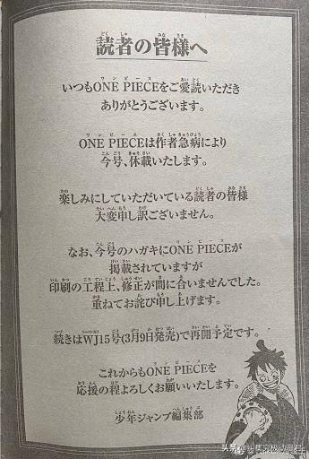 此外,漫画方面我们往往会有隔周休刊的情况。据了解,由于漫画的创作多由尾田老师操刀,但是尾田老师本人的身体状况并不是很好,所以有时候休刊也是难免的。