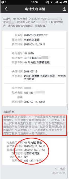 因为缺少这个手续,我无法立案,也就无法要求警方正式介入。而小牛这边,人家内部也有制度,不能随便透露客户的隐私信息。结果,我就只能眼睁睁地看着我被盗的电池,在同一个城市里,被其他人用着。好心痛!