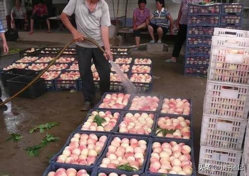 第一,七八月份还处于伏天,正是高温季节,毛桃在运输的时候,车厢里温度高,水分蒸发很快,冲水可以补充毛桃表面的水分,降低表面温度,减少对果实内部的水分蒸发,起到一定的保鲜作用。