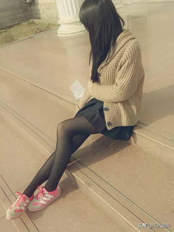 独具一格的穿搭,运动鞋配上肉色丝袜,很小清新。