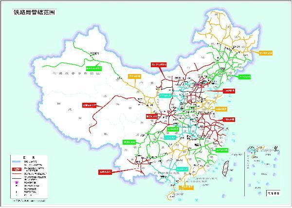 北京铁路局、成都铁路局、武汉铁路局、上海铁路局、沈阳铁路局、西安铁路局、太原铁路局、济南铁路局、郑州铁路局、南宁铁路局、南昌铁路局、昆明铁路局、兰州铁路局、哈尔滨铁路局、呼和浩特铁路局、乌鲁木齐铁路局、广铁集团、青藏铁路公司。
