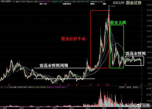 市场中牛熊言论之争,最简单的检验方法就是看券商,你说是牛市起点,这个底哪个底,券商都是跌势,何来牛市?熊市中券商是领跌最明显的板块,这是源于中国券商主要收入就是来自于经纪业务,与股市牛熊息息相关。在《日历买股法》书中给券商划分过四个梯队,以第一梯队的国海证券、国金证券等为例,其在2011-2014年震荡市周期中,几乎就是横盘走势,鲜有表现,但在2014年四季度开始发力,随着资金杠杆牛市,涨幅高达3倍左右。随后从2015年6月至今,一路下行,又回到了上一波起涨点,即2011-2014年的位置。