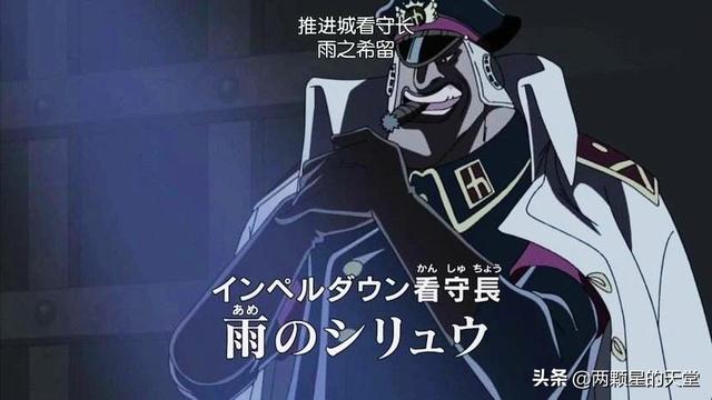 雨之希留是推进城的二号人物,由于嗜杀的性格也被关在了监狱,随着黑胡子的入侵被释放了出来,我们可以看的出来黑胡子非常的喜欢这个人,说明实力还是有的,但是目前我们并没有看到他出手。但是从我们紧知道的信息来看,雨之希留是个狠人,实力也是不容小觑,听说还得到了隐身果实,当一个刺客应该是很不错。不过我并不认为他有大将的实力,如果他真的有大将实力,海军不会埋没他,并且不会轻易的放走他作恶。况且听他的语气来看,雨之希留不是麦哲伦的对手。