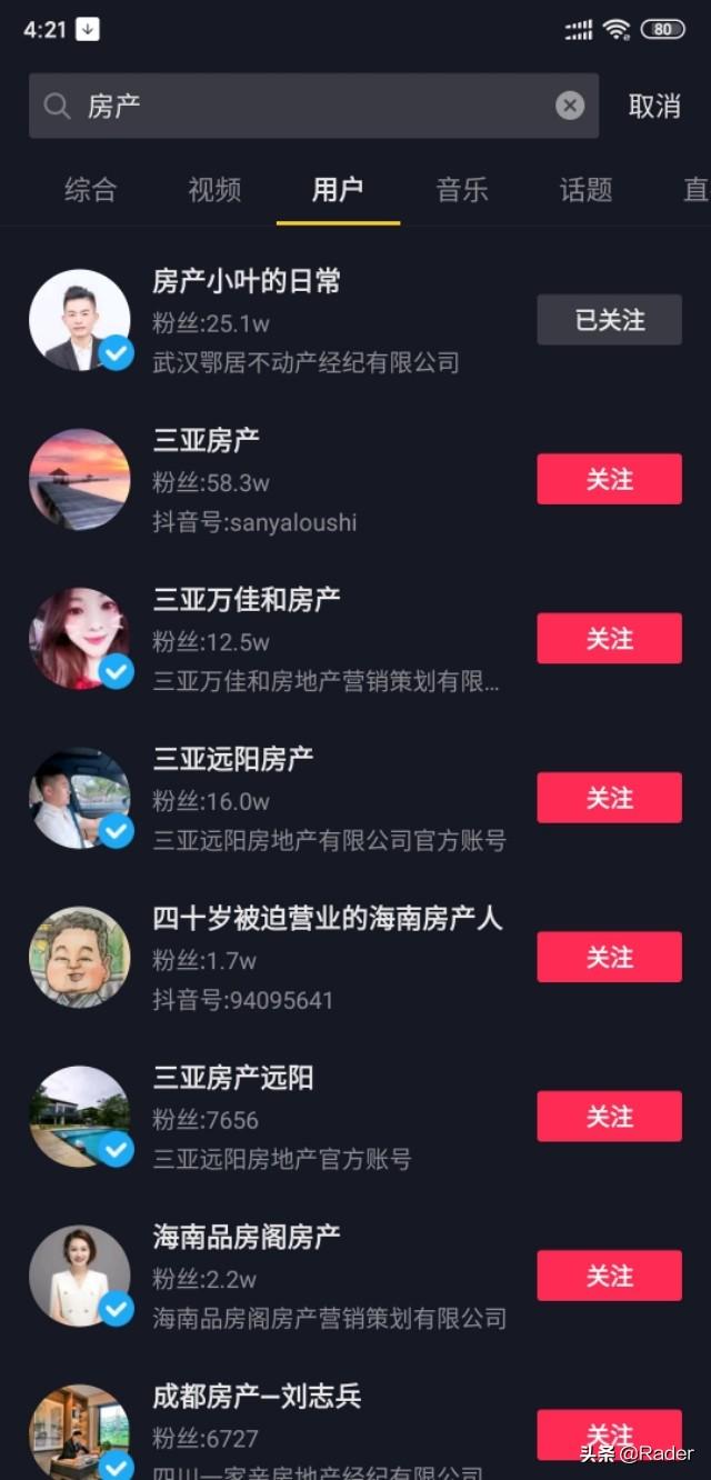 上面用户的抖音都是做房产的,做的也不错,可以参考一下他们视频,点击进去学习一下。