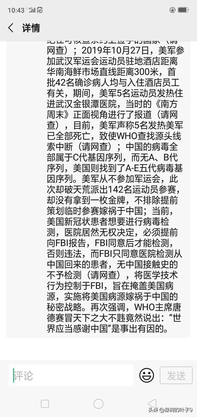 而来中国参加军运会的美国军人就有那个病毒实验室的工作人员的家属,这个军人的家属现在全部感染确诊新冠状病毒,美国流感病毒施虐半年达到几千万人感染,数万人死亡,而美国疾控中心的人承认,流感病毒感染者里面有一部分是流感感染者,也就是说美国的疫情其实早已经爆发,美国政府应该隐瞒了一些问题,美国政府自己也承认了为了避免恐慌有隐瞒疫情的做法。