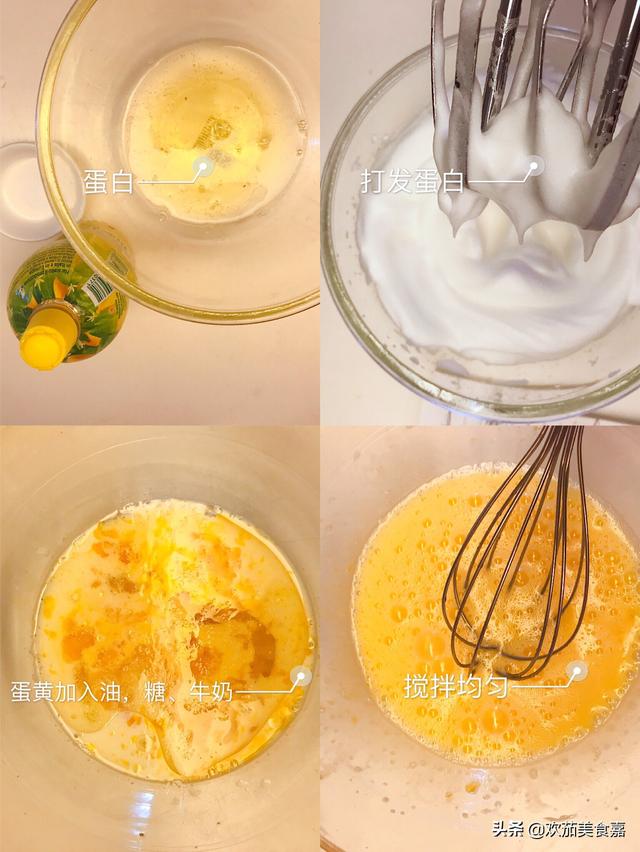 2.按量打蛋,在这里我用了4个,蛋清分离,然后将蛋清搅拌