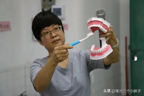 2.嚼面来回刷。牙刷稍倾斜一点。来回在上下牙刷动。