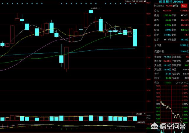 从技术面上说,创业板今天的一根大阴线击穿多根均线,短期内难以修复这根阴线带来的K线走势和市场心理的影响,所以创业板的下跌才刚刚开始。