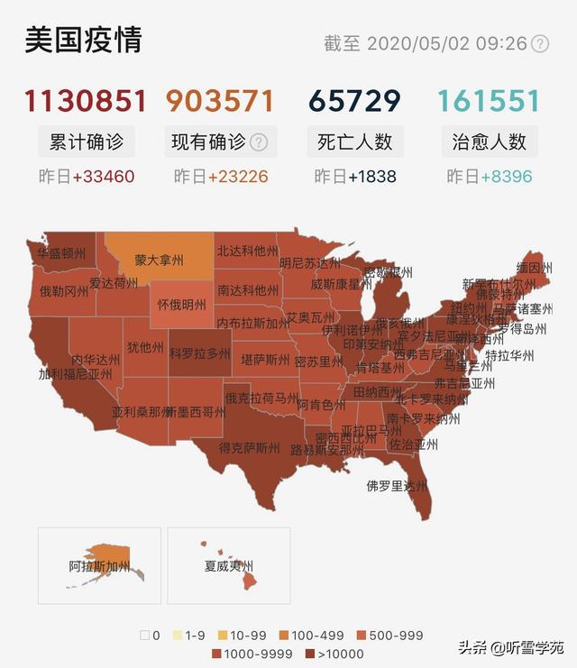 截止5月3日18时,美国新冠肺炎累计确诊113.3万人,累计死亡6.6万人。从4月23日起,单日新增平均达到3万左右。