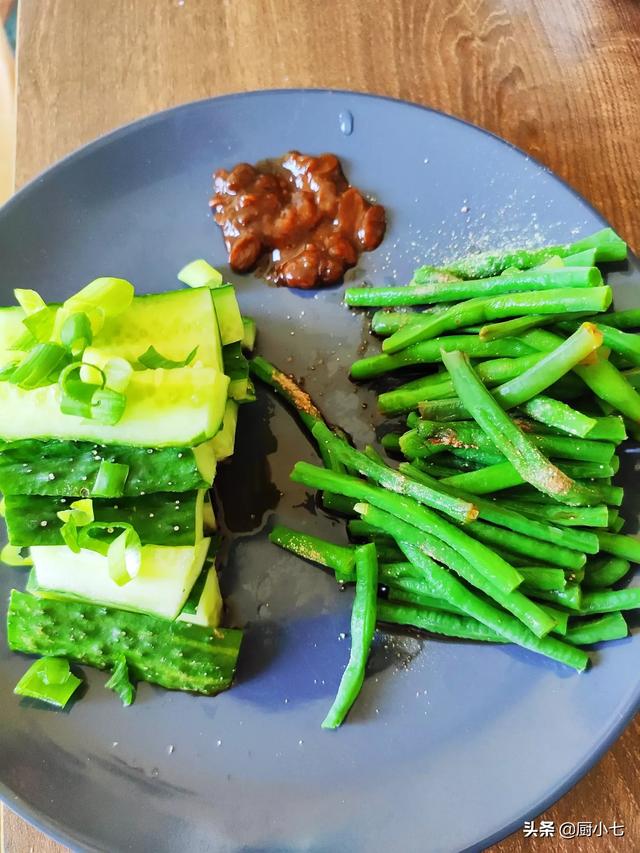 如果觉得太油腻,小葱黄瓜,凉拌豆角,开胃的小菜解油腻清肠胃。