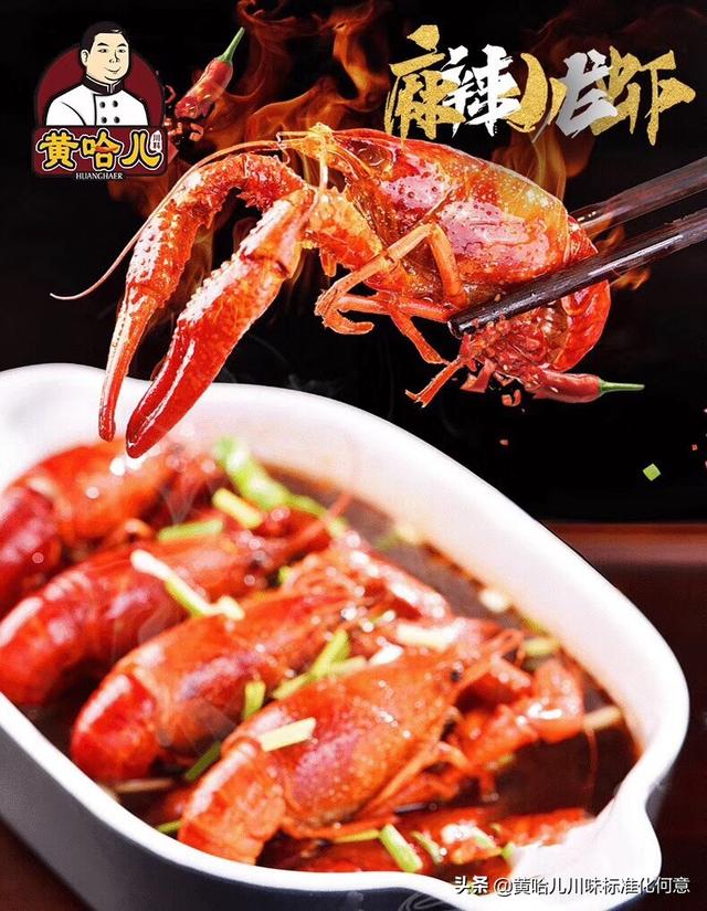 配料:青椒100g、红椒100g、洋葱50g;小料:蒜80g、姜10g、花椒5g、干辣椒30g;调料:黄哈儿秘制龙虾油100g、黄哈儿秘制龙虾料100g、盐5g、鸡精10g、白糖10g、啤酒100ml、大豆油150g;