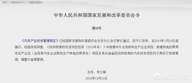 2018年12月10日,《汽车产业投资管理规定》发布,自2019年1月10日起施行。该规定仍然延续:严格控制新增传统燃料汽车产能,积极推动新能源汽车健康发展。这里值得关注的是,插电混动汽车被纳入到了传统燃料汽车管理,可见政策对其发展的限制。