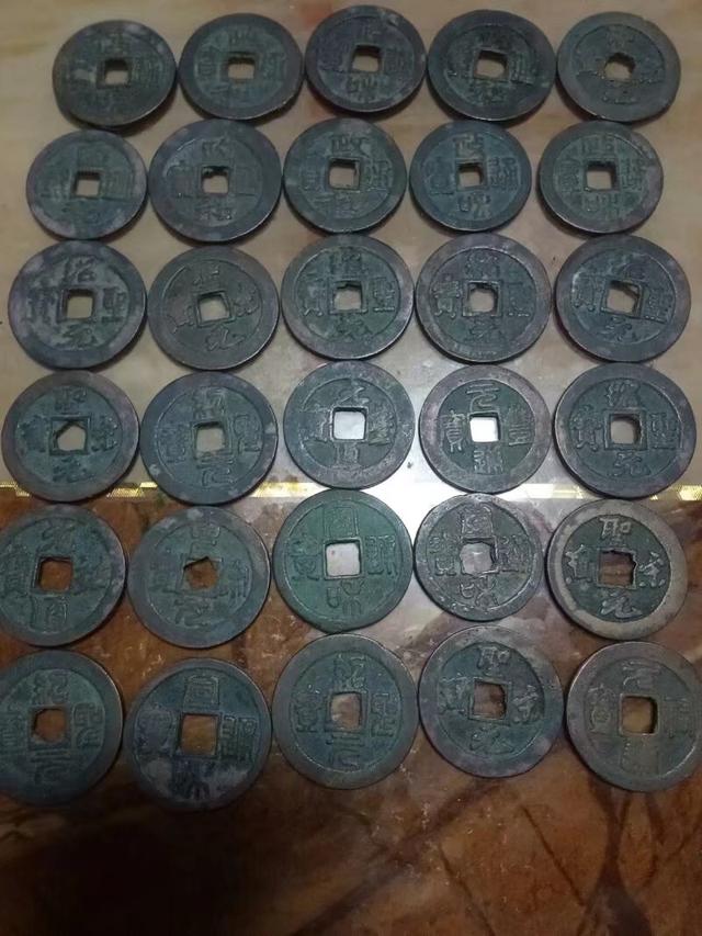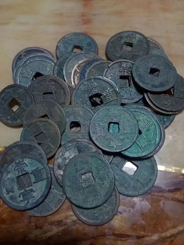 照片不是很清楚,大中通宝朱元璋明开国以前铸造,传世包浆,开门,宋钱崇宁重宝亦对,大中通宝潜力不错。谢谢!