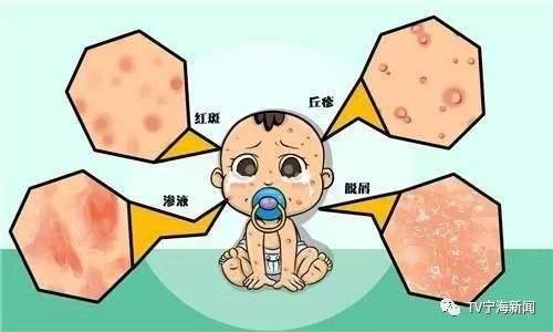 渗出型小儿湿疹:多见于较胖的婴儿,红色皮疹间有水疮和红斑,可有皮肤组织肿胀现象,很痒,抓挠后有黄色渗出,皮疹可向躯干、四肢以及全身蔓延,并容易继发皮肤感染。