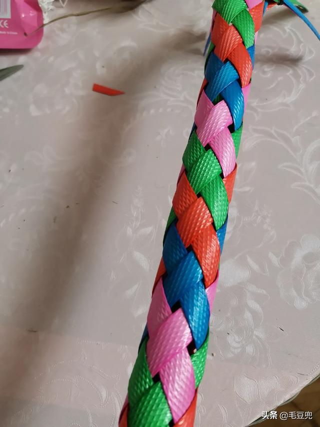 第四种编织方法:直接用编织包的材料,把材料固定在编织包上,然后再做一下改进,比如给它编个花样,效果看起来很不错的。做法简单实用。