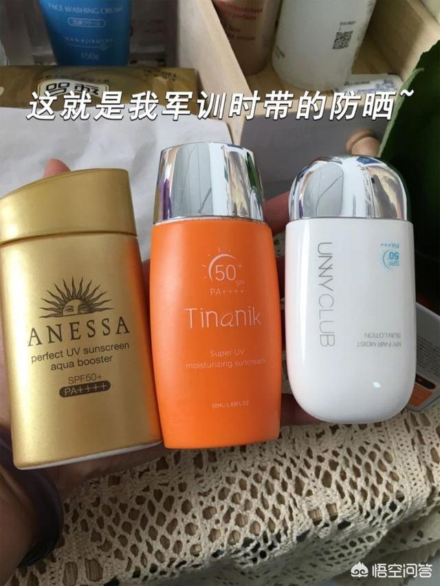 防晒霜的话,日本安耐晒挺好,就是有点贵,不管选哪款,军训这种情况防晒倍数至少要50倍。
