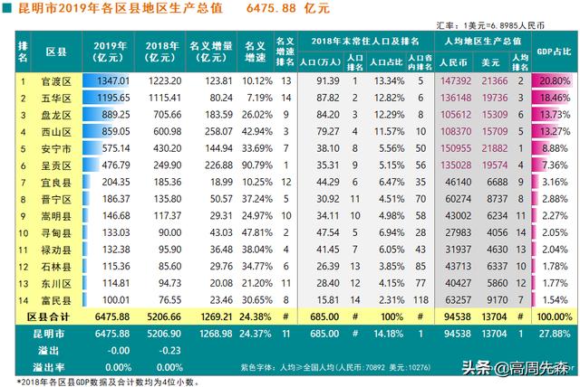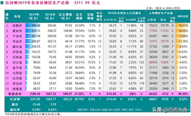 从州市一级来说,只有昆明和玉溪的人均高于全国水平,其他地州都没有达到国家标准。在县市一级玉溪红塔区的人均第一。下面提供一些数据,紫红色字体的是达到国家人均标准的,仅做参考