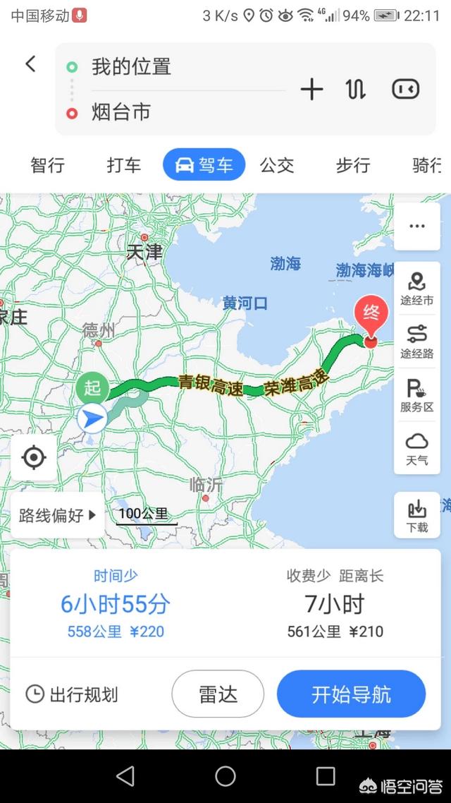 从聊城开车到烟台的总行程里数为557.6公里,开车时间需要5小时23分钟