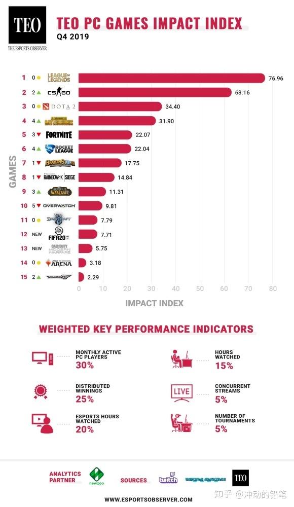 这是国外媒体The Esports Observer2019年第四季度PC游戏热度排行榜,战地压根就没有上榜