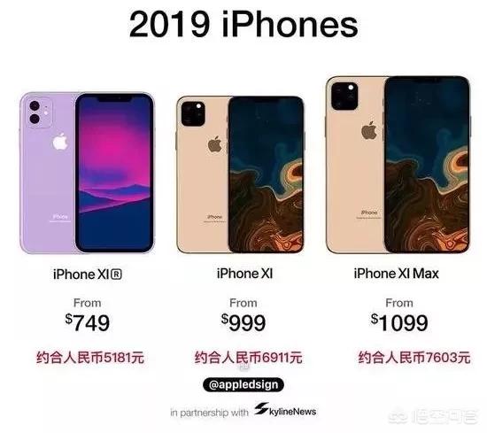 来到大家最喜闻乐见的新iPhone价格预测环节,国外appledsign预测价格,iPhone XI Max售价1099美元,iPhone XI售价999美元,iPhone XI R售价749美元。请不要问为什么降价,上一波XR降价又让苹果赚得盘满钵满,毕竟5k不到买新款iPhone,确实是一个很好的营销噱头,一边骂新iPhone丑,一边抢购喊真香,这样的场景恐怕今年还要发生。
