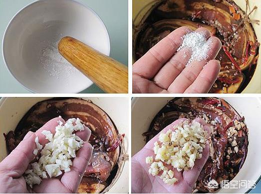 9、放入蒜泥和生姜末,抓匀后再腌制12个小时左右12个小时后再把肉挂在阴凉通风的地方直到风干,最好是一个礼拜后开始食用