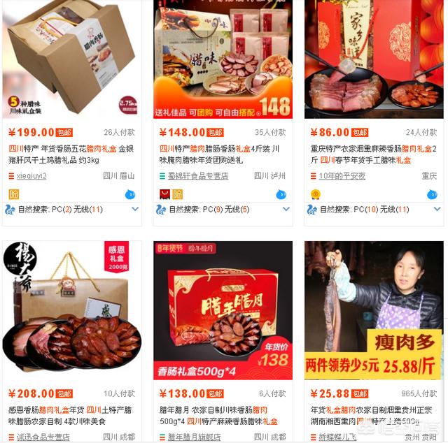最近年货节,我一直在网上浏览关于腊肉的礼盒。由于四川腊肉比较出名,所以我在网上一艘“四川 腊肉礼盒”出来许许多多的腊肉礼盒。