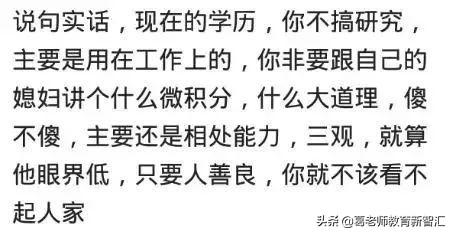 而反观现在,我们是互联网时代,是一个信息大爆炸的时代,即使是行走在偏远的农村,那些大娘大妈也可以跟你滔滔不绝的聊特朗普,聊约翰逊,表达他们对于当下世界疫情的看法等等,所以几乎不存在信息层面的代沟,因此在互联网时代,几乎不存在所谓的两个人没有共同语言,毕竟你的博士专业并不等于我们闲谈聊天时的谈资,甚至你自己都不屑于在日常生活中去聊自己的专业,那学历跟共同语言又有啥关系呢?