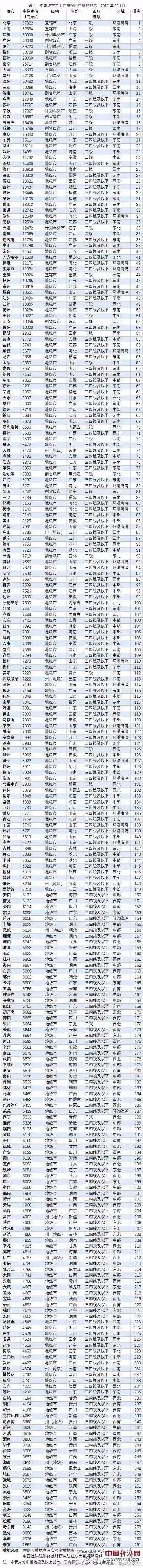 我们来看一看下列表格,这个表格中有261个以上的地级市参加排名我们来看一看烟台的房价到底是多少排名,又是多少?