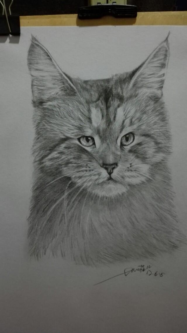 关于人的头发画法.我在问答题关于仕女画头发画法中介绍了王叔晖和黄均的画法.动物丝毛方法我以画貓为例.介绍一下散锋丝毛方法.